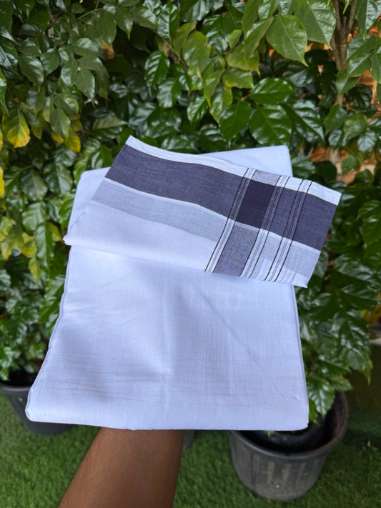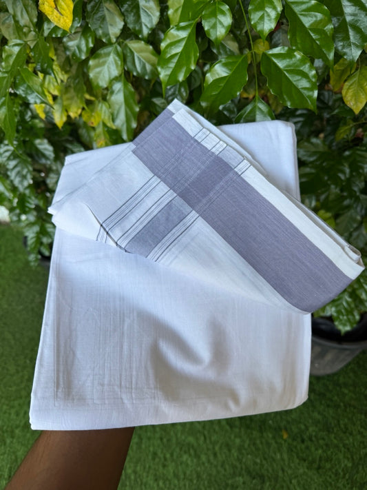 Admk Veshti - 20% Discount! Kaitharikada 100% Cotton Off White Double - (Unbleached) Mundu/Dhoti - 100X100 - 1.5 inch Gold Kasavu & Black White Maroon Shaded kara - 5 KK5274 ASH