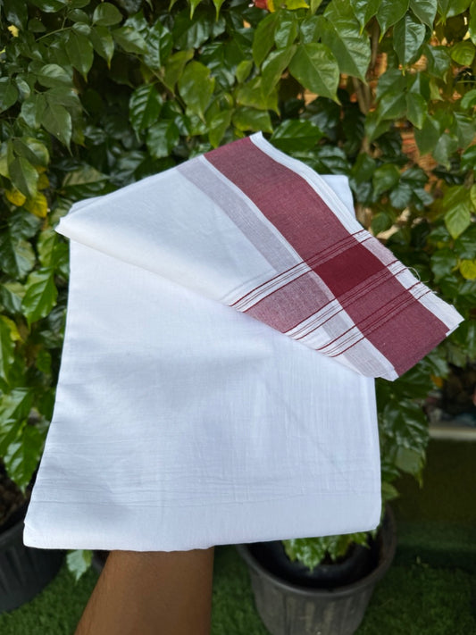 Panchakacham Dhoti - 20% Discount! KaithariKada 100% Pure Cotton Pure White - 100x80 thread - North Indian - Attached Gamcha 9x5 Dhoti - 1.75 inch Maroon shaded striped kara - 5 KK5275 PMC