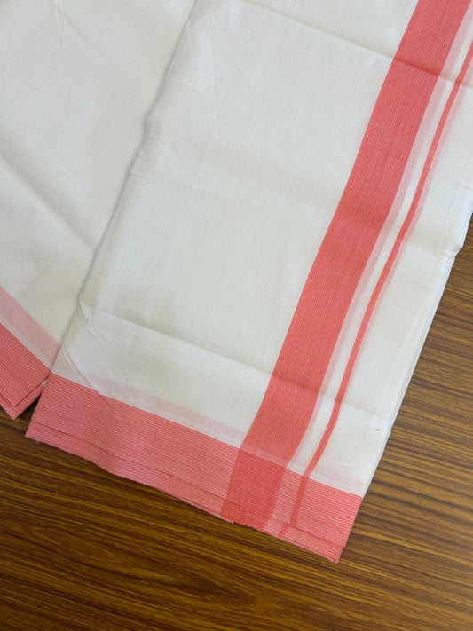 25% Discount ! KaithariKada Handloom Unakkupaavu Balaramapuram - 100% Pure Cotton Double Mundu/Dhoti Pure white - 80x90 - 1.5 inch Coral red shaded striped Kara 4 mtr (8.5 Muzham) - 15 KK5263 YAR