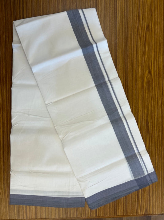 25% Discount ! KaithariKada Handloom Unakkupaavu Balaramapuram - 100% Pure Cotton Double Mundu/Dhoti Pure white - 80x90 - 1.5 inch Ash blue shaded striped Kara 4 mtr (8.5 Muzham) - 14 KK5263 YAR
