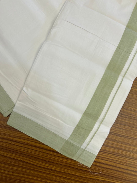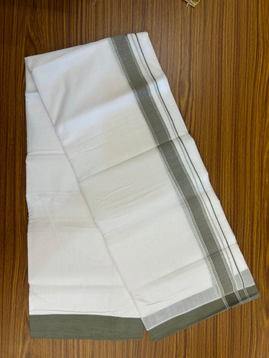 25% Discount ! KaithariKada Handloom Millpaav Balaramapuram - 100% Pure Cotton Double Mundu/Dhoti Pure white - 80x90 - 1.25 inch Silver Kasav Sage Green & Brown Striped Kara 4 mtr (8.5 Muzham) - 23 KK5263 YAR