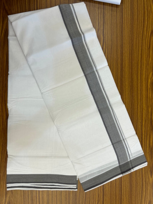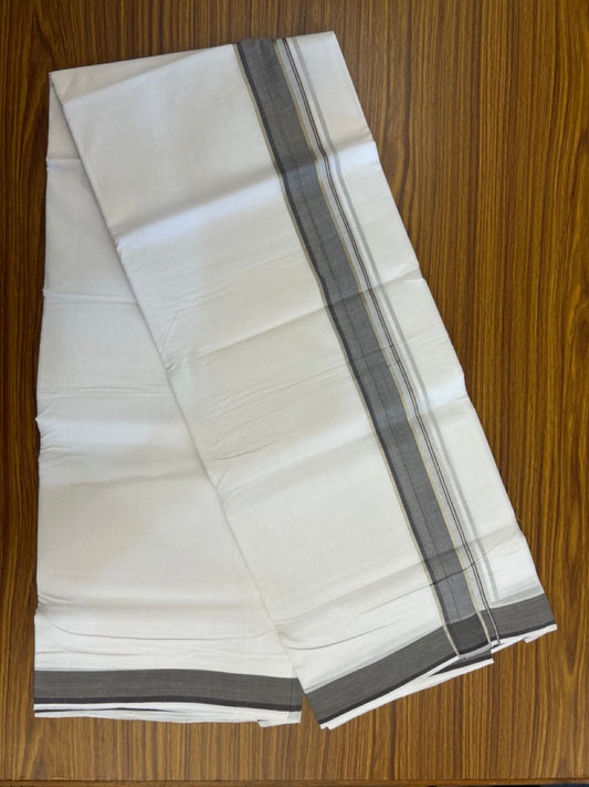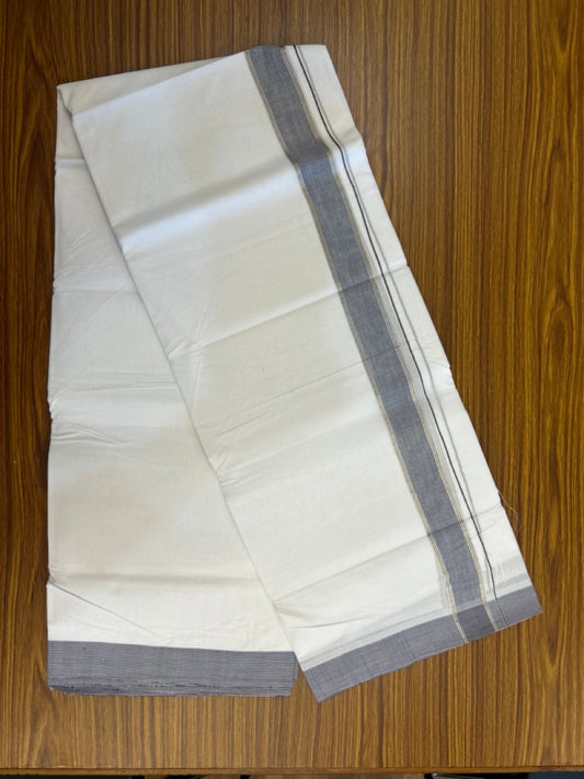 25% Discount ! KaithariKada Handloom Unakkupaavu Balaramapuram - 100% Pure Cotton Double Mundu/Dhoti Pure white - 80x90 - 1.5 inch Silver Kasav Ash & Brown Striped Kara 4 mtr (8.5 Muzham) - 34 KK5263 YAR