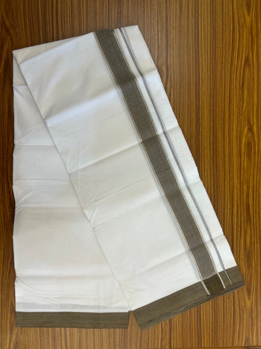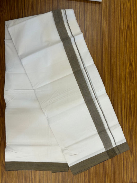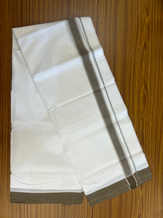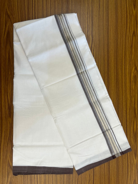 25% Discount ! KaithariKada Handloom Millpaav Balaramapuram - 100% Pure Cotton Double Mundu/Dhoti Pure white - 80x90 - 1.25 inch Silver Kasav & Brown Striped Kara 4 mtr (8.5 Muzham) - 36 KK5263 YAR