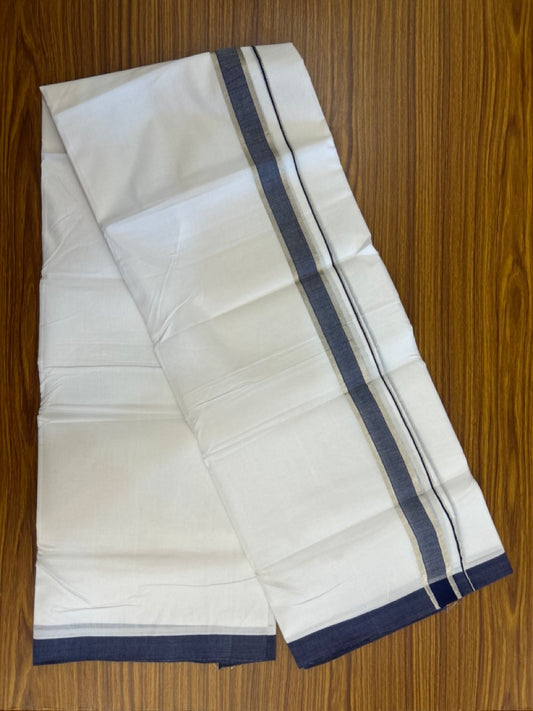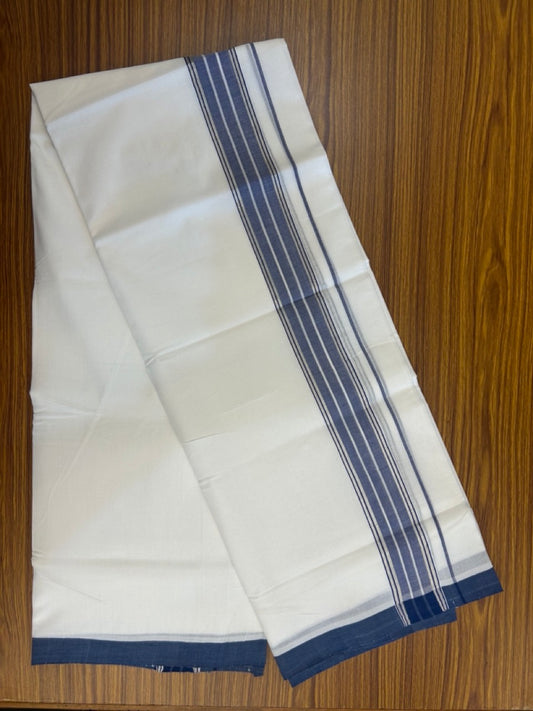 25% Discount ! KaithariKada Handloom Unakkupaavu Balaramapuram - 100% Pure Cotton Double Mundu/Dhoti Pure white - 80x90 - 1.5 inch Silver Kasav & Navy Blue Striped Kara 4 mtr (8.5 Muzham) - 31 KK5263 YAR