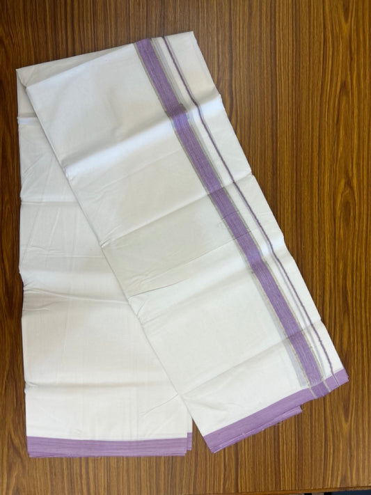 25% Discount ! KaithariKada Handloom Unakkupaavu Balaramapuram - 100% Pure Cotton Double Mundu/Dhoti Pure white - 80x90 - 1 inch Silver Kasav & Purple Lavender Shaded Kara 4 mtr (8.5 Muzham) - 24 KK5263 YAR