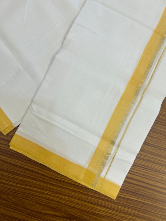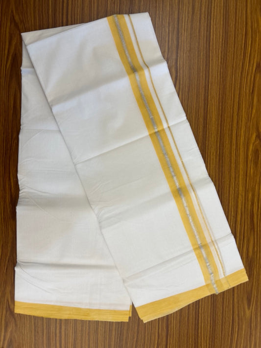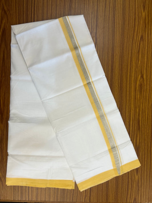 25% Discount ! KaithariKada Handloom Unakkupaavu Balaramapuram - 100% Pure Cotton Double Mundu/Dhoti Pure white - 80x90 - 1.25 inch Silver Kasav & Yellow Striped Kara 4 mtr (8.5 Muzham) - 25 KK5263 YAR