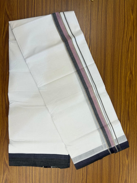 25% Discount ! KaithariKada Handloom Millpaav Balaramapuram - 100% Pure Cotton Double Mundu/Dhoti Pure white - 80x90 - 1.5 inch Silver Kasav Black & Lavender Pink Shaded Kara 4 mtr (8.5 Muzham) - 26 KK5263 YAR