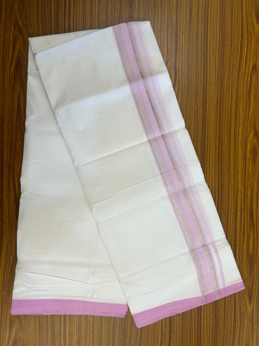 25% Discount ! KaithariKada Handloom Millpaav Balaramapuram - 100% Pure Cotton Double Mundu/Dhoti Pure white - 80x90 - 1.5 inch Silver Kasav & Lavender Pink Striped Kara 4 mtr (8.5 Muzham) - 29 KK5263 YAR