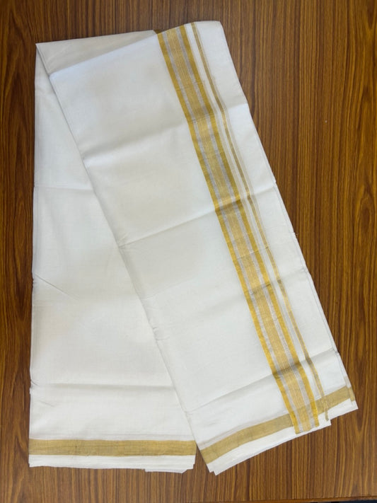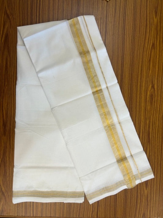 25% Discount ! KaithariKada Handloom Millpaav Balaramapuram - 100% Pure Cotton Double Mundu/Dhoti Pure white - 80x90 - 1.25 inch Silver & Gold Kasav Striped Kara 4 mtr (8.5 Muzham) - 38 KK5263 YAR