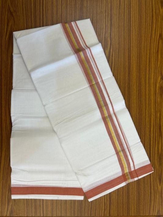 25% Discount ! KaithariKada Handloom Millpaav Balaramapuram - 100% Pure Cotton Double Mundu/Dhoti Pure white - 80x90 - 1.25 inch Silver Gold Kasav & Brick Red Kara 4 mtr (8.5 Muzham) - 37 KK5263 YAR
