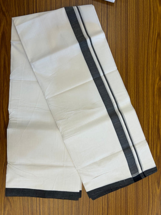 25% Discount! KaithariKada Handloom Millpaav Balaramapuram - 100% Pure Cotton Double Mundu/Dhoti Pure white - 80x90 - 1 inch Black Mulloth Kara 4 mtr (8.5 Muzham) - 2 KK5263 YAR