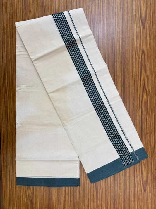 20% Discount! KaithariKada Balaramapuram 100% Cotton Off white Double Mundu/Dhoti - (100x80)S - 1.5 inch Dark Green & Silver Kasav Striped Kara - 4mtr (8.5muzham) - 82 KK5255 VAS
