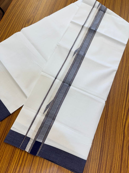 20% Discount ! Kaitharikada Balaramapuram 100% Cotton Pure White Double Mundu/Dothi - 100x80 - 1.5 inch Navy Blue & Silver Kasav Design Kara 4 mtr (8.5 muzham) - 68 KK5255 VAS
