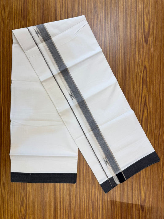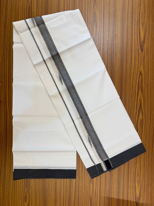 20% Discount ! Kaitharikada Balaramapuram 100% Cotton Pure White Double Mundu/Dothi - 100x80 - 1.5 inch Black & Silver Kasav Design Kara 4 mtr (8.5 muzham) - 69 KK5255 VAS