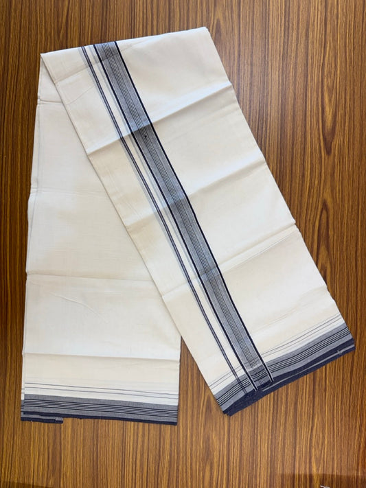 20% Discount! KaithariKada Balaramapuram 100% Cotton Off white Double Mundu/Dhoti - (100x80)S - 1.5 inch Navy Blue Shaded Striped Kara - 4mtr (8.5muzham) - 91 KK5255 VAS