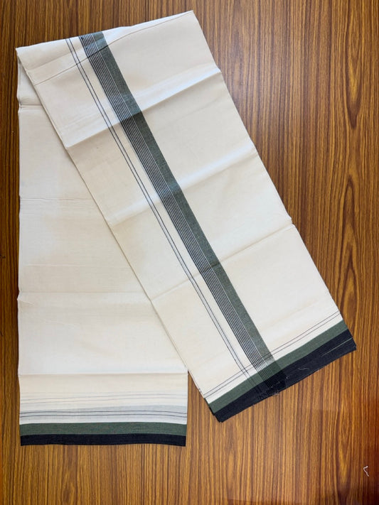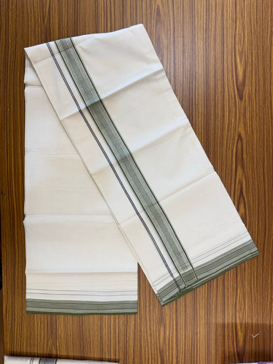 20% Discount! KaithariKada Balaramapuram 100% Cotton Off white Double Mundu/Dhoti - (100x80)S - 1.5 inch Olive Green Shaded Striped Kara - 4mtr (8.5muzham) - 92 KK5255 VAS