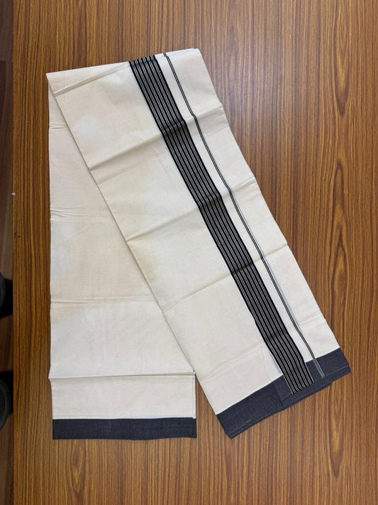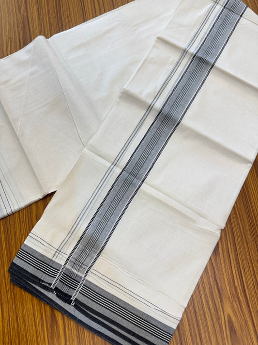 20% Discount! KaithariKada Balaramapuram 100% Cotton Off white Double Mundu/Dhoti - (100x80)S - 1.75 inch Black & Silver Kasav Striped Kara - 4mtr (8.5muzham) - 84 KK5255 VAS
