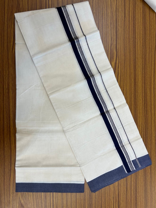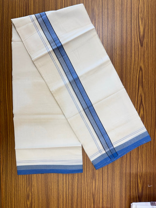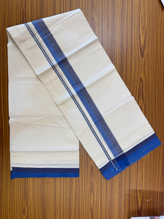 20% Discount! KaithariKada Balaramapuram 100% Cotton Off white Double Mundu/Dhoti - (100x80)S - 1.5 inch Navy Blue & Blue Shaded Kara - 4mtr (8.5muzham) - 94 KK5255 VAS