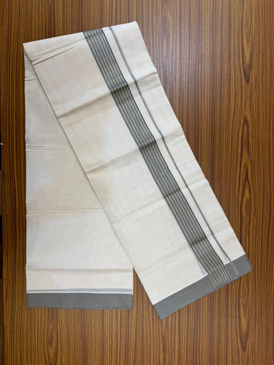 20% Discount! KaithariKada Balaramapuram 100% Cotton Off white Double Mundu/Dhoti - (100x80)S - 1.5 inch Ash Grey & Silver Kasav Striped Kara - 4mtr (8.5muzham) - 78 KK5255 VAS