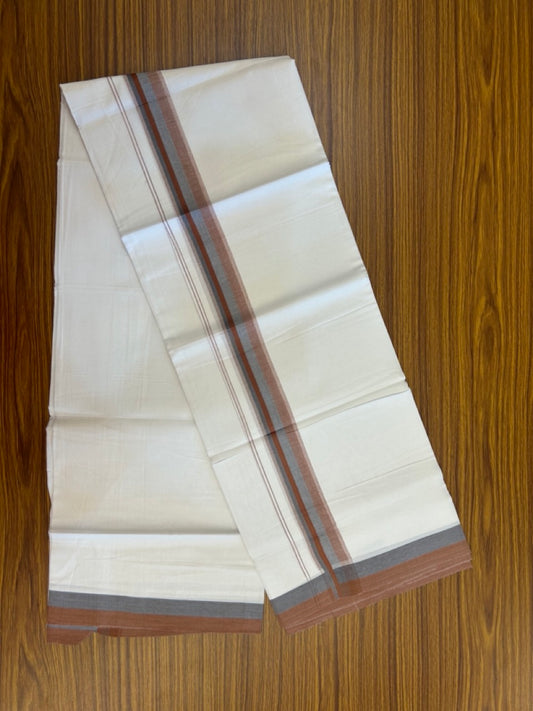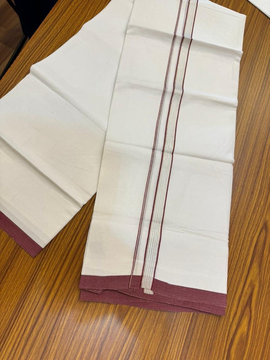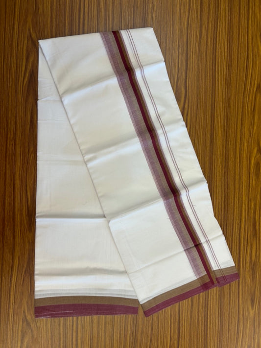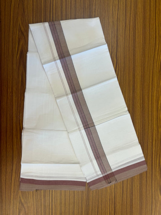 20% Discount ! Kaitharikada Balaramapuram 100% Cotton Pure White Double Mundu/Dothi - 100x80 - 1.5 inch Black Light Brown & Maroon Shaded Striped Kara 4 mtr (8.5 muzham) - 43 KK5255 VAS