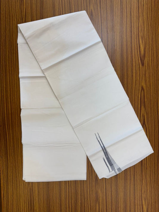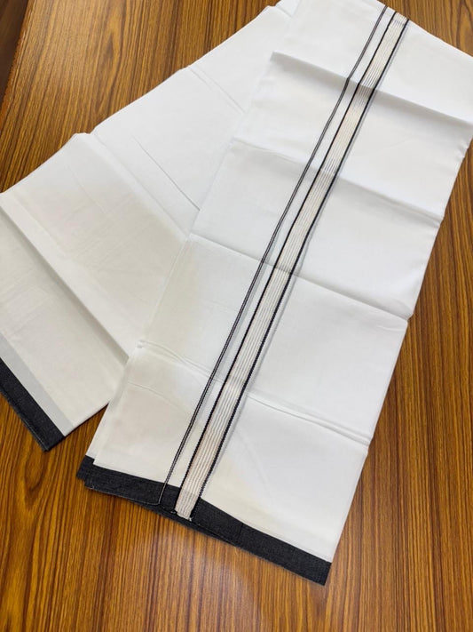 20% Discount ! Kaitharikada Balaramapuram 100% Cotton Pure White Double Mundu/Dothi - 100x80 - 0.75 inch Silver Kasav & Black Striped Kara 4 mtr (8.5 muzham) - 56 KK5255 VAS