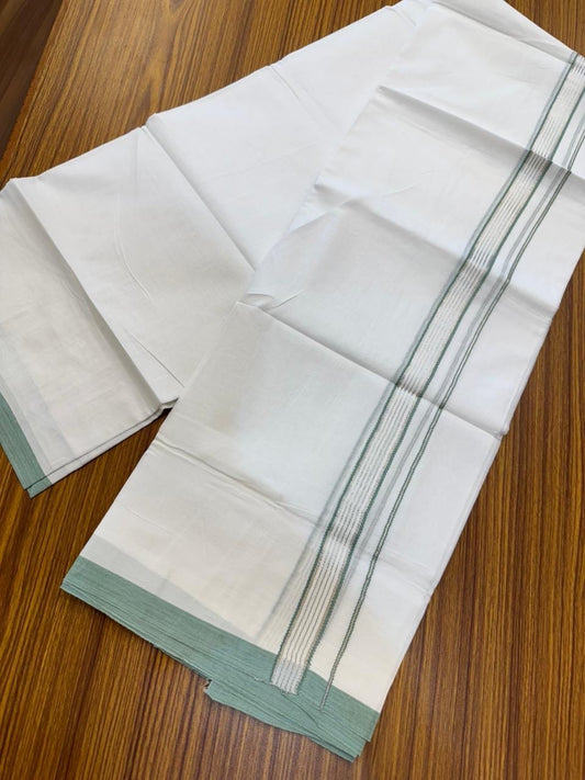 20% Discount ! Kaitharikada Balaramapuram 100% Cotton Pure White Double Mundu/Dothi - 100x80 - 0.75 inch Silver Kasav & Mint Green Striped Kara 4 mtr (8.5 muzham) - 58 KK5255 VAS