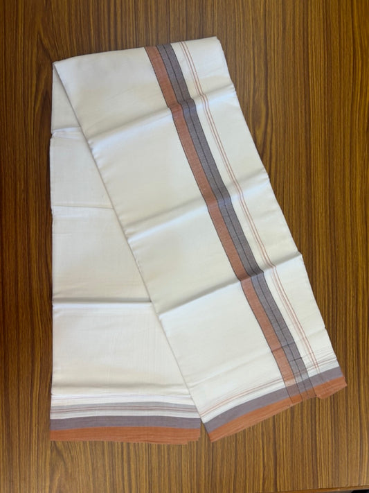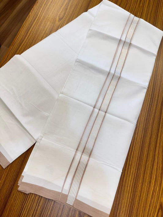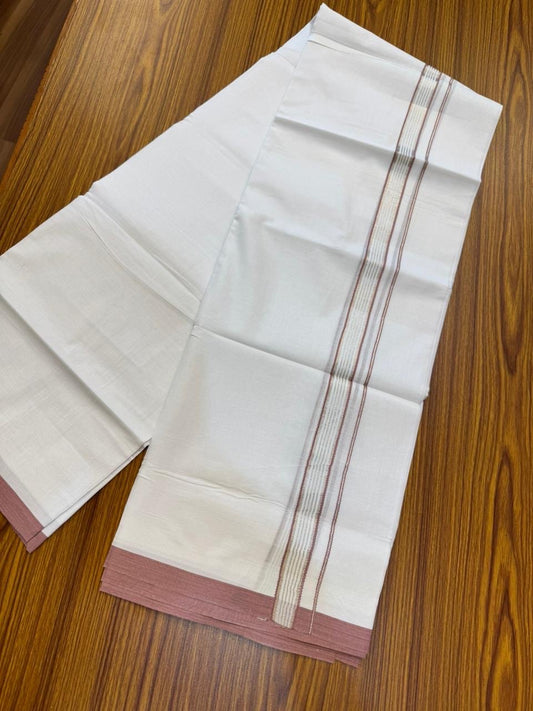 20% Discount ! Kaitharikada Balaramapuram 100% Cotton Pure White Double Mundu/Dothi - 100x80 - 0.75 inch Silver Kasav & Dusty Peach Striped Kara 4 mtr (8.5 muzham) - 60 KK5255 VAS