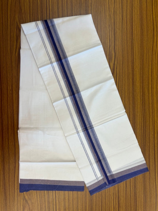 20% Discount ! Kaitharikada Balaramapuram 100% Cotton Pure White Double Mundu/Dothi - 100x80 - 1.5 inch Blue & Brown Shaded Striped Kara 4 mtr (8.5 muzham) - 49 KK5255 VAS