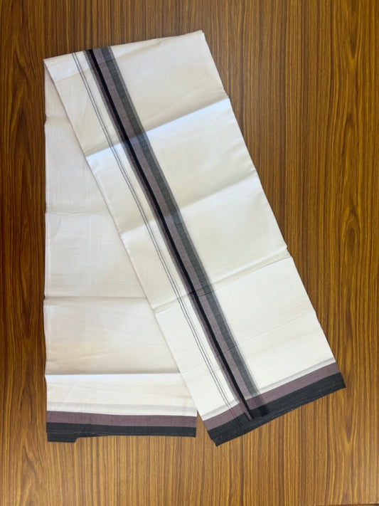 20% Discount ! Kaitharikada Balaramapuram 100% Cotton Pure White Double Mundu/Dothi - 100x80 - 1.5 inch Black Brown & Lavender Shaded Striped Kara 4 mtr (8.5 muzham) - 42 KK5255 VAS