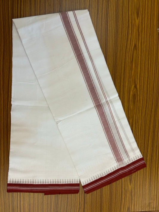 Premium Kathar Type Mercerised Pure Cotton Single Mundu Kaitharikada Special - Kaily / Lungi - 1.25 inch Maroon Striped kara White Body Kuppadam Border (2 meter / 4 muzham) - 1 KK8031 MUT