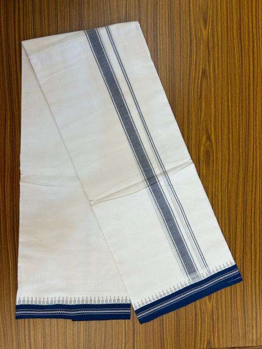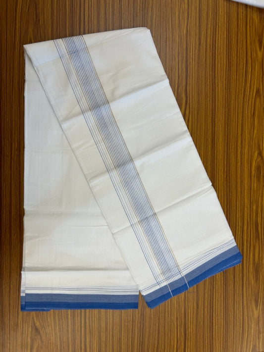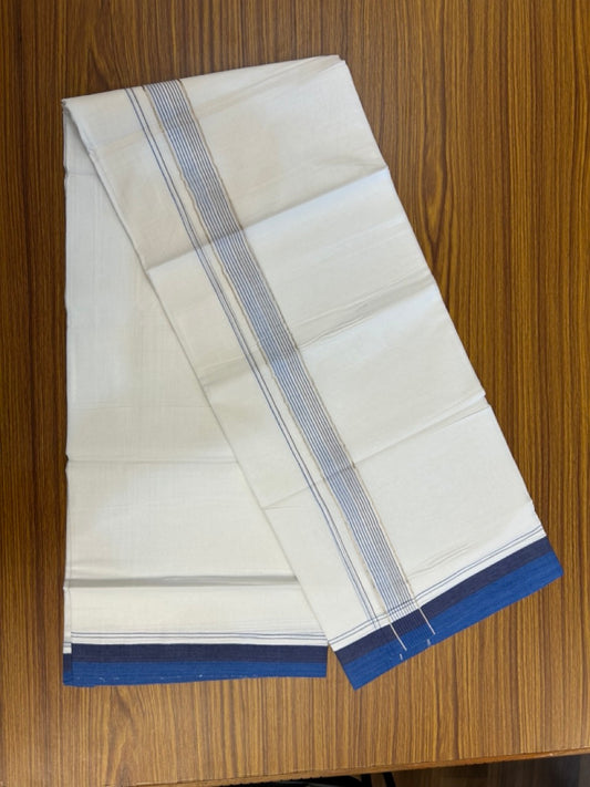 20% Discount ! Kaitharikada Balaramapuram 100% Cotton Pure White Double Mundu/Dothi - 100x80 - 1.75 inch Silver Kasav Navy Blue & Royal Blue Stripes Kara 4 mtr (8.5 muzham) - 21 KK5255 VAS