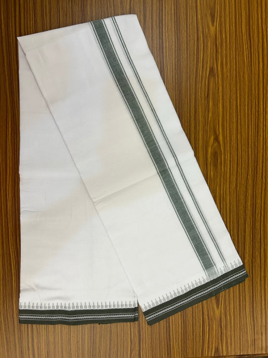 20% Discount ! Kaitharikada Balaramapuram 100% Cotton Pure White Double Mundu/Dothi - 100x80 - 1.5 inch Dark Sage Green Stripes Designer Kara 4 mtr (8.5 muzham) - 9 KK5255 VAS