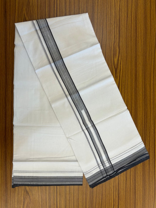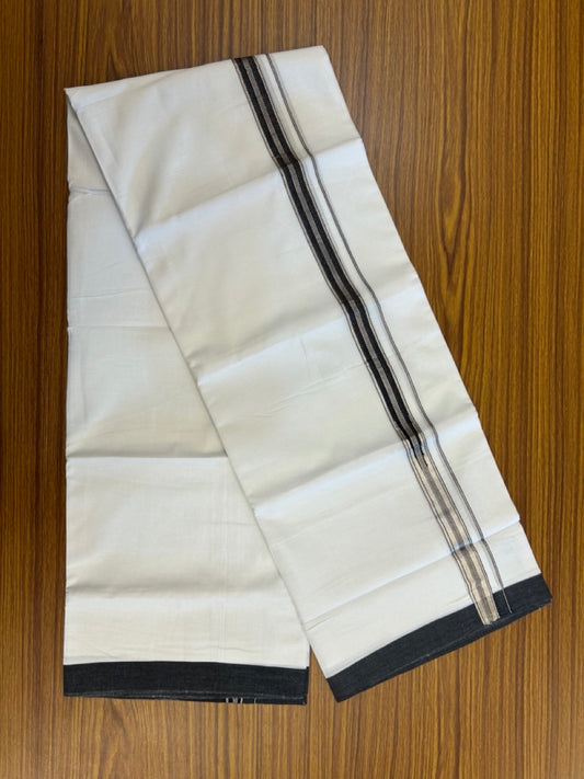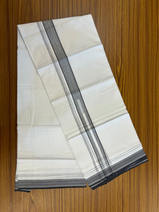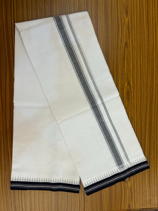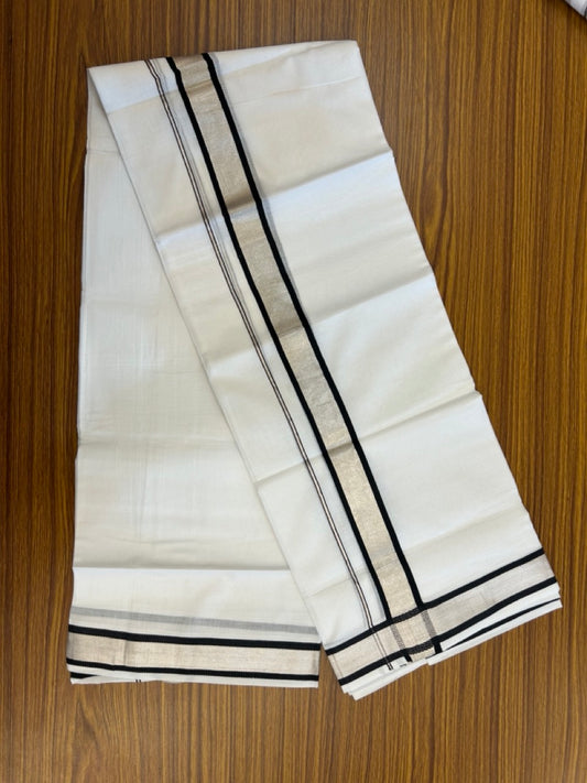 20% Discount ! Kaitharikada Balaramapuram 100% Cotton Pure White Double Mundu/Dothi - 100x80 - 0.75 inch Silver Kasav & Black Stripes One Side Chutty Kara 4 mtr (8.5 muzham) - 17 KK5255 VAS