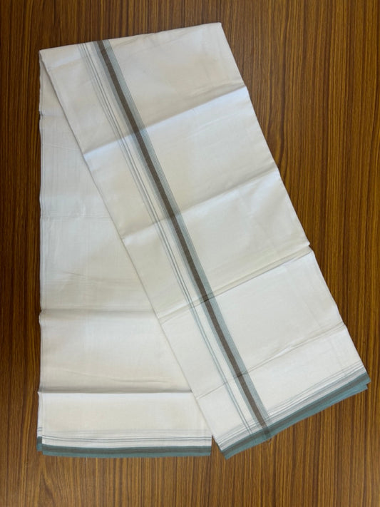 20% Discount ! Kaitharikada Balaramapuram 100% Cotton Pure White Double Mundu/Dothi - 100x80 - 0.75 inch Brown & Teal green Stripes Kara 4 mtr (8.5 muzham) - 4 KK5255 VAS