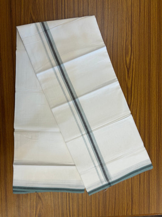 20% Discount ! Kaitharikada Balaramapuram 100% Cotton Pure White Double Mundu/Dothi - 100x80 - 0.75 inch Black & Teal green Stripes Kara 4 mtr (8.5 muzham) - 5 KK5255 VAS