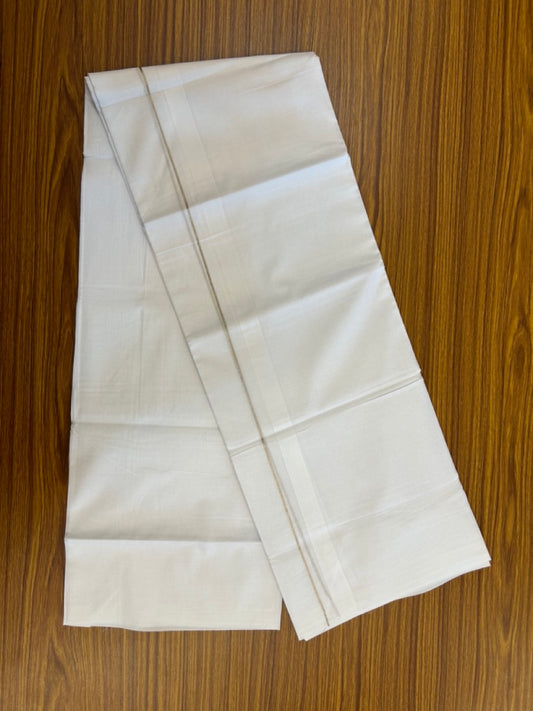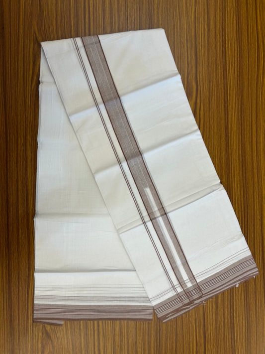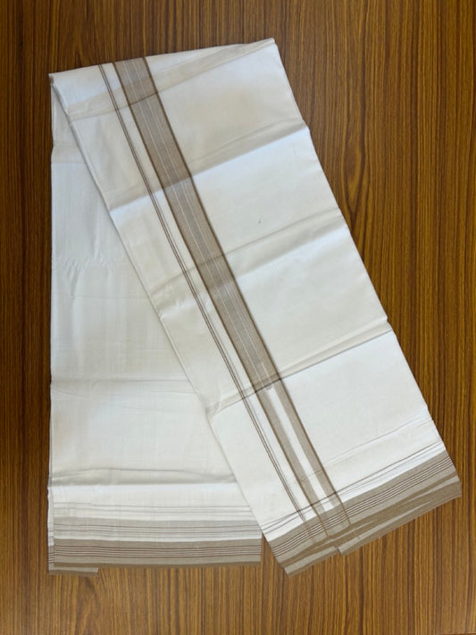 20% Discount ! Kaitharikada Balaramapuram 100% Cotton Pure White Double Mundu/Dothi - 100x80 - 1.5 inch Light Brown Stripes Designer Kara 4 mtr (8.5 muzham) - 8 KK5255 VAS