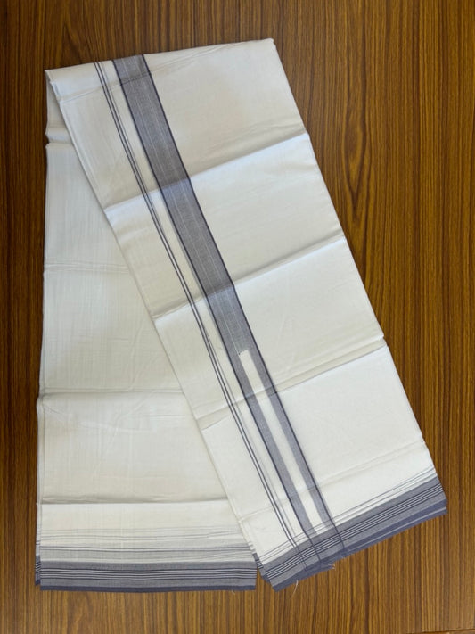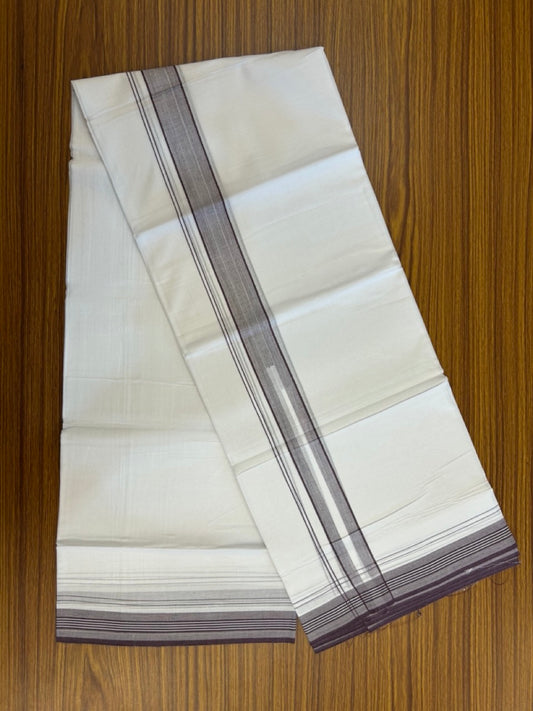 20% Discount ! Kaitharikada Balaramapuram 100% Cotton Pure White Double Mundu/Dothi - 100x80 - 1.5 inch Purple ash Stripes Designer Kara 4 mtr (8.5 muzham) - 10 KK5255 VAS