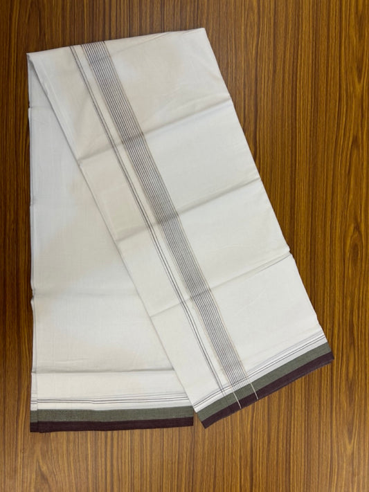20% Discount ! Kaitharikada Balaramapuram 100% Cotton Pure White Double Mundu/Dothi - 100x80 - 1.75 inch Silver Kasav Sage Green & Wine Purple Stripes Kara 4 mtr (8.5 muzham) - 20 KK5255 VAS