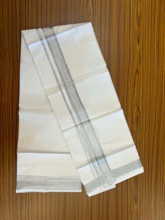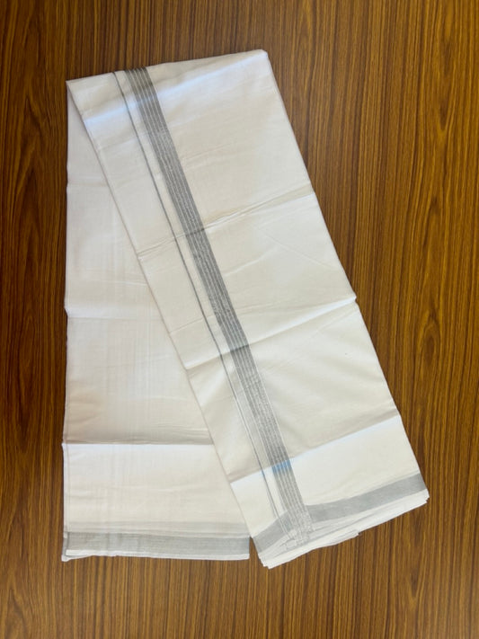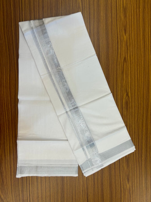 20% Discount ! Kaitharikada Balaramapuram 100% Cotton Pure White Double Mundu/Dothi - 100x80 - 1.5 inch Silver Kasav Side Striped Kara 4 mtr (8.5 muzham) - 35 KK5255 VAS