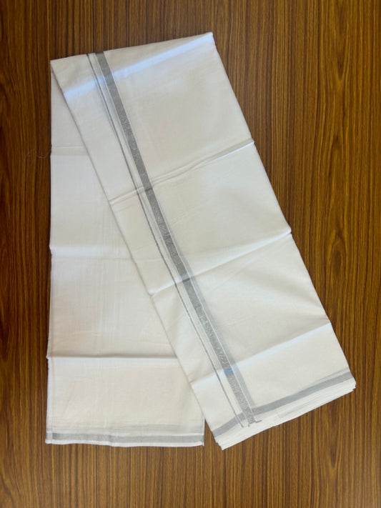 20% Discount ! Kaitharikada Balaramapuram 100% Cotton Pure White Double Mundu/Dothi - 100x80 - 1 inch Silver Kasav Striped Kara 4 mtr (8.5 muzham) - 33 KK5255 VAS