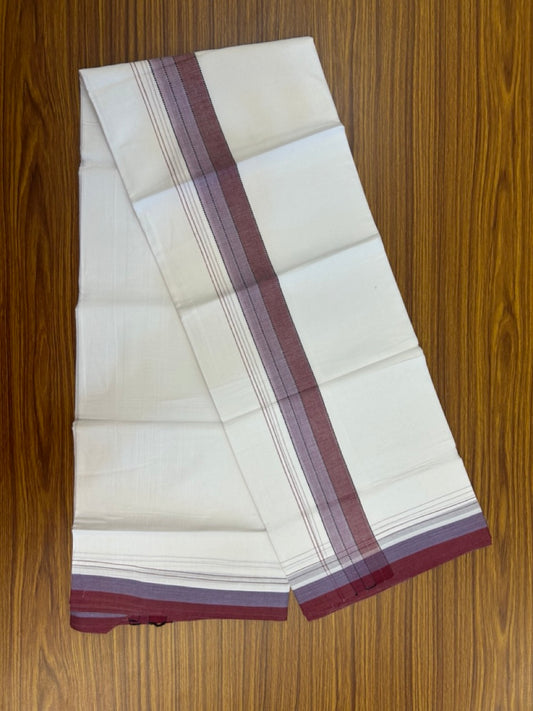 20% Discount ! Kaitharikada Balaramapuram 100% Cotton Pure White Double Mundu/Dothi - 100x80 - 2 inch Maroon & Lavender Shaded Striped Kara 4 mtr (8.5 muzham) - 39 KK5255 VAS