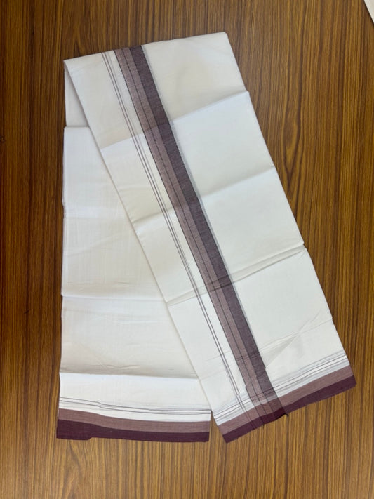 20% Discount ! Kaitharikada Balaramapuram 100% Cotton Pure White Double Mundu/Dothi - 100x80 - 1.5 inch Wine Purple Stripes Kara 4 mtr (8.5 muzham) - 12 KK5255 VAS