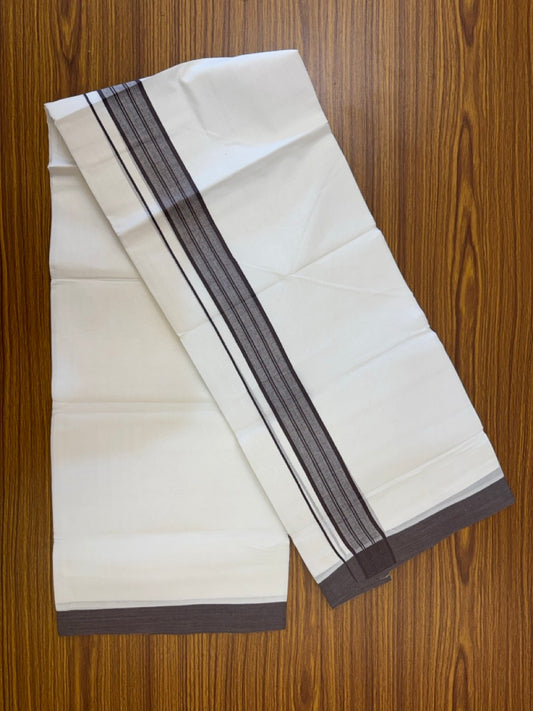 Pure White Double 20% Discount! KaithariKada 100% Cotton Pure Cotton Double Mundu / Dhoti - 100x80 - 1.5 inch Brown Jacquard Silver Kasav Kara 3.80 meter (8 muzham) - 86 KK5220 THI
