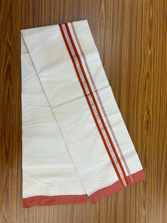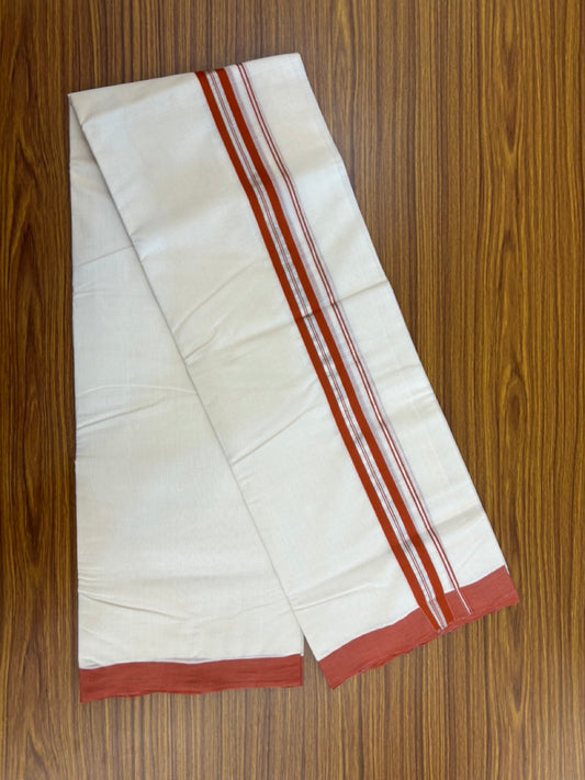 25% Discount! KaithariKada Handloom Millpaav Balaramapuram - Cotton Double Mundu/Dhoti Off white (Unbleached) - 80x90 - 1.25 inch Silver Kasav & Brick Orange striped Kara 3.60 meter (8 Muzham) - 64 KK5256 RAM