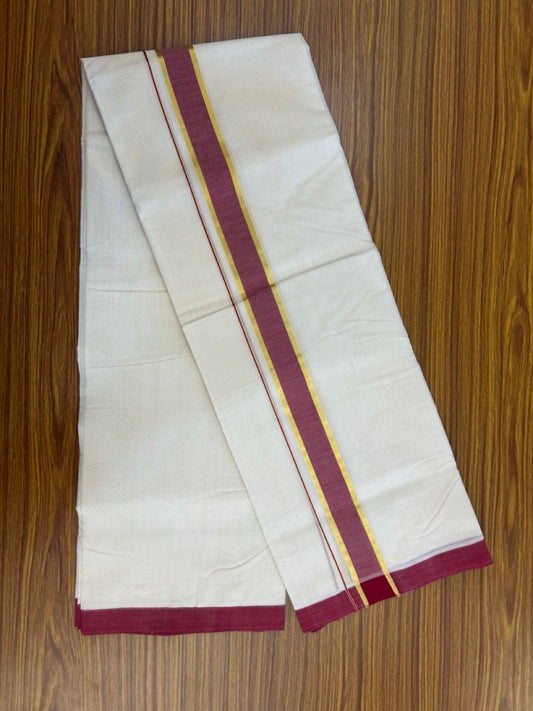 25% Discount! KaithariKada Handloom Millpaav Balaramapuram - Cotton Double Mundu/Dhoti Off white (Unbleached) - 80x90 - 1.5 inch Kasav & Maroon shaded Kara 3.60 meter (8 Muzham) - 61 KK5256 RAM