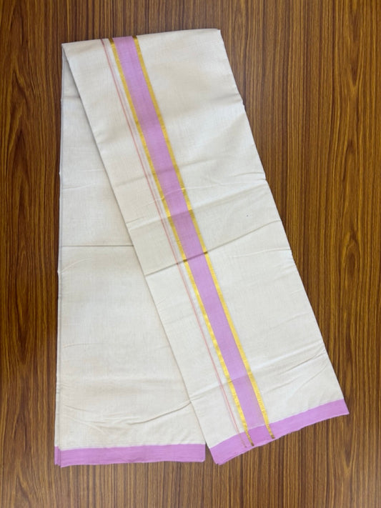 25% Discount! KaithariKada Handloom Millpaav Balaramapuram - Cotton Double Mundu/Dhoti Off white (Unbleached) - 80x90 - 1.5 inch Kasav & Lavender Pink shaded Kara 3.60 meter (8 Muzham) - 62 KK5256 RAM