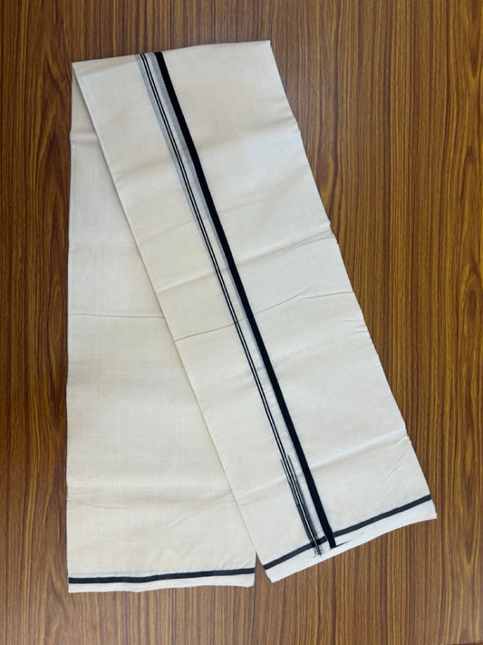 25% Discount! KaithariKada Handloom Millpaav Balaramapuram - Cotton Double Mundu/Dhoti Off white (Unbleached) - 80x90 - 1 cm Black Puliyilakkara Chutty 3.60 meter (8 Muzham) - 55 KK5256 RAM