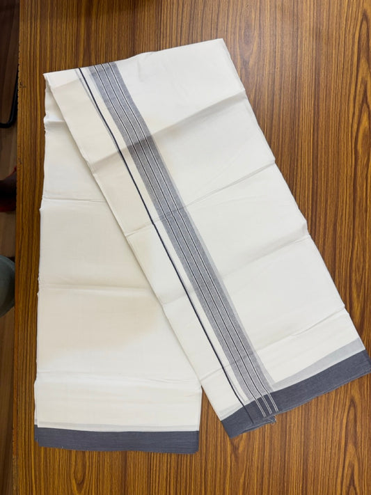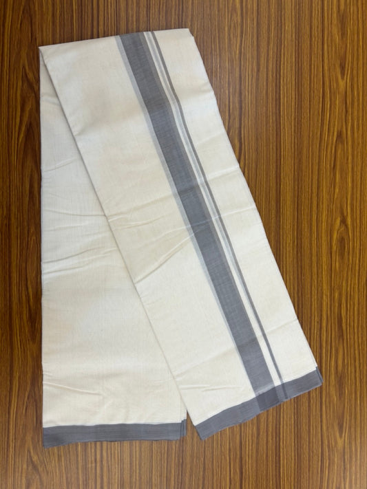 25% Discount! KaithariKada Handloom Millpaav Balaramapuram - Cotton Double Mundu/Dhoti Off white (Unbleached) - 80x90 - 1.25 inch Ash Grey Mulloth Kara 3.60 meter (8 Muzham) - 47 KK5256 RAM