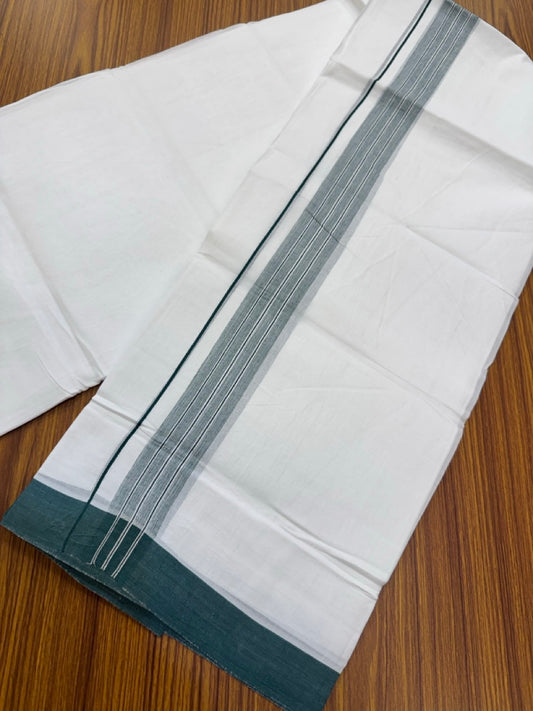 4.5 Meters (10 Muzham) - Pure white double 25% Discount ! KaithariKada Balaramapuram - 100% Pure Cotton 100x80 - Mundu/Dothi - 1.5 inch Dark Green Shaded Kara - 55 KK5258 THI