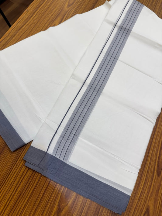4.5 Meters (10 Muzham) - Pure white double 25% Discount ! KaithariKada Balaramapuram - 100% Pure Cotton 100x80 - Mundu/Dothi - 1.5 inch Navy Blue Ash Mix Shaded Kara - 53 KK5258 THI